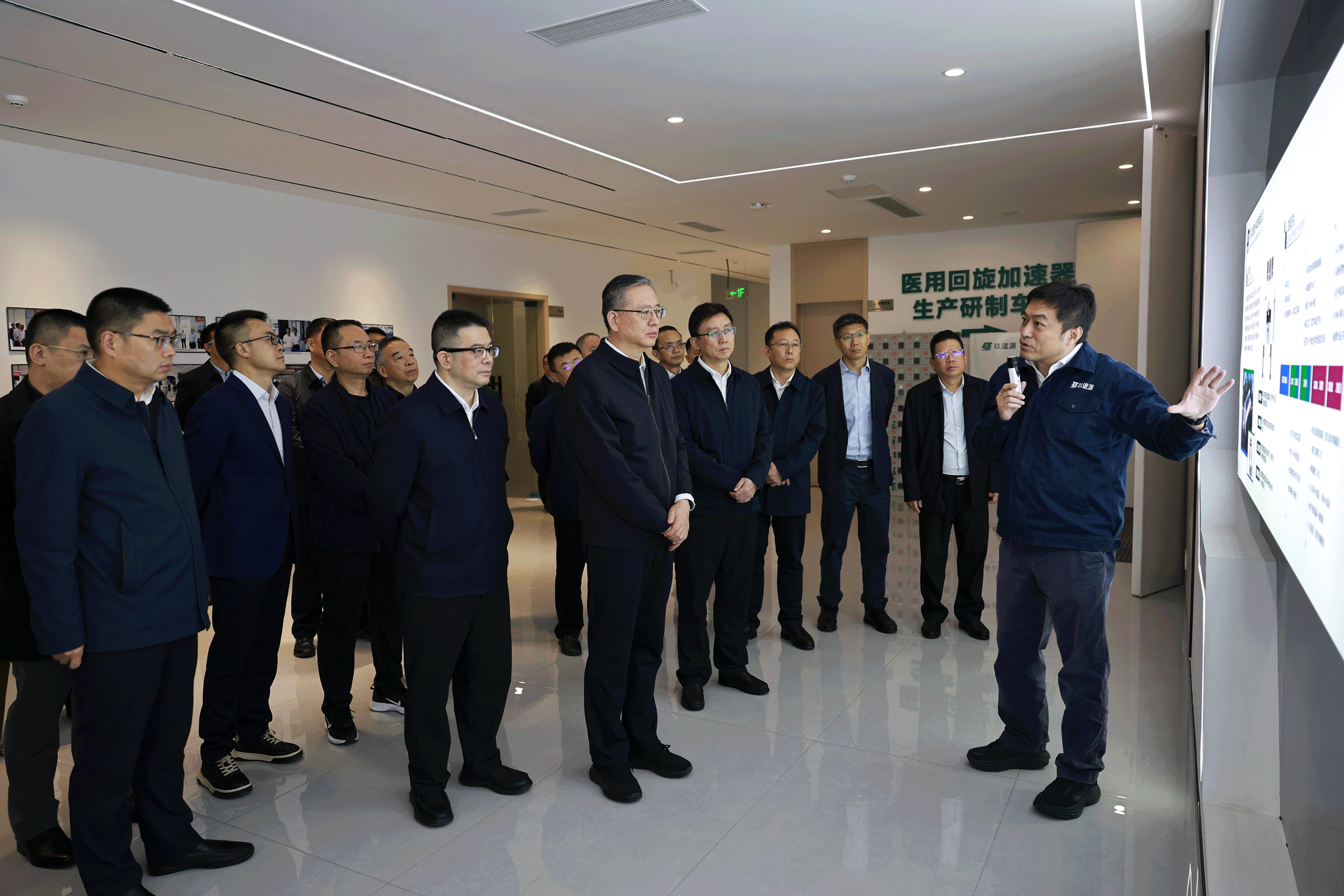 代表團(tuán)參觀公司展廳、回旋加速器生產(chǎn)研制車間,總經(jīng)理馬瑞利主持接待。馬瑞利詳細(xì)介紹企業(yè)科技成果轉(zhuǎn)移轉(zhuǎn)化、自主創(chuàng)新水平提升、市場推廣應(yīng)用和未來戰(zhàn)略規(guī)劃等情況。玖誼源堅(jiān)決落實(shí)高質(zhì)量發(fā)展政策,立足新質(zhì)生產(chǎn)力打造創(chuàng)新動能、加大研發(fā)投入、推進(jìn)關(guān)鍵核心技術(shù)攻關(guān)、醫(yī)用回旋加速器創(chuàng)新迭代和新型關(guān)鍵同位素制備。