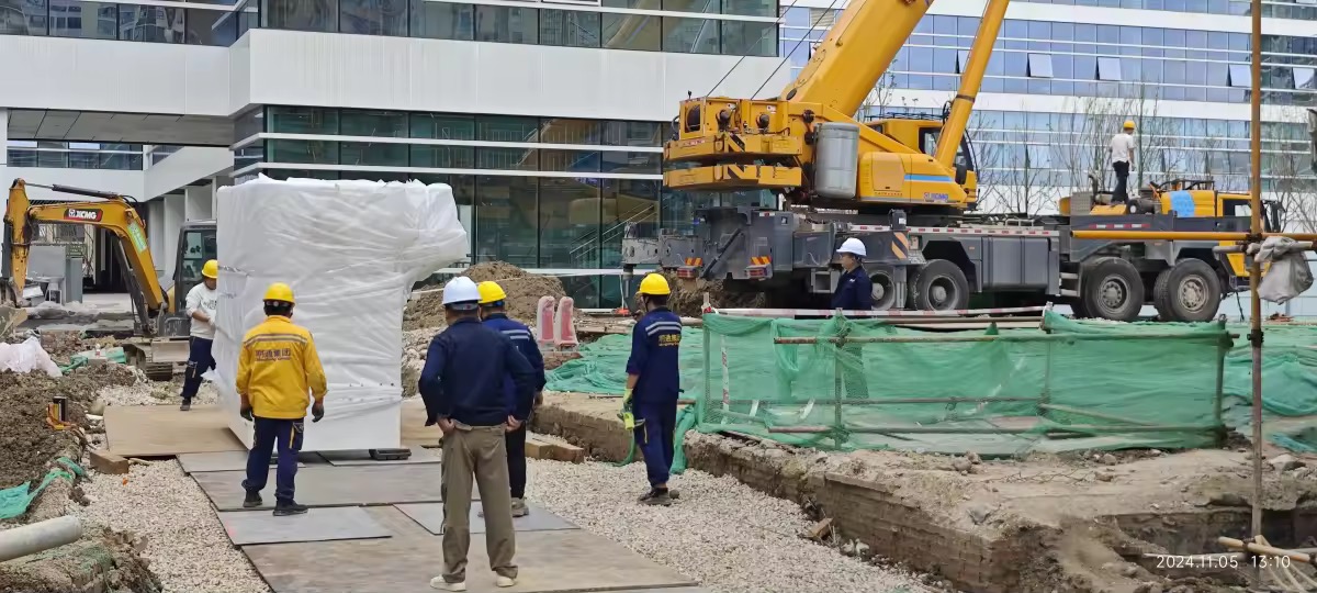 在玖誼源項(xiàng)目部的協(xié)作下,確保回旋加速器安全、精準(zhǔn)地進(jìn)入指定安裝位置。