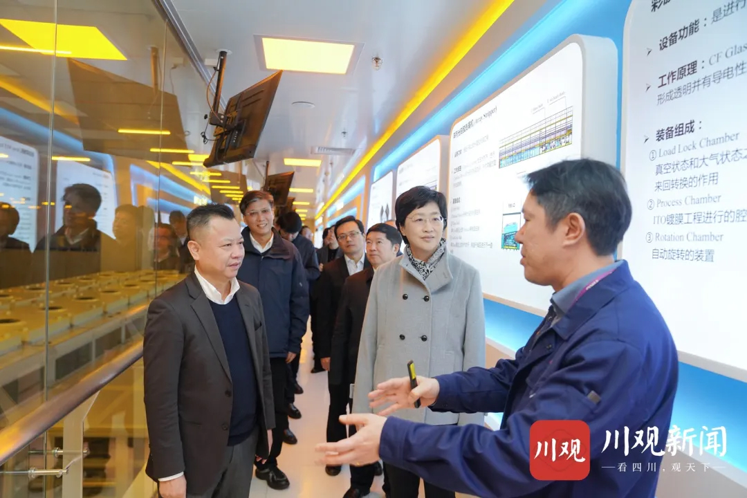 施小琳在綿陽惠科光電科技有限公司,調(diào)研企業(yè)新型顯示創(chuàng)新研發(fā)、產(chǎn)品應(yīng)用和生產(chǎn)經(jīng)營等情況。