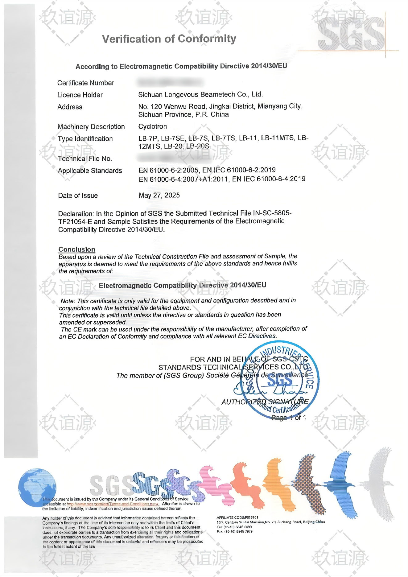 近日,玖誼源加速器系列產(chǎn)品(20MeV/12MeV/11MeV/7MeV)正式通過歐盟CE認(rèn)證!